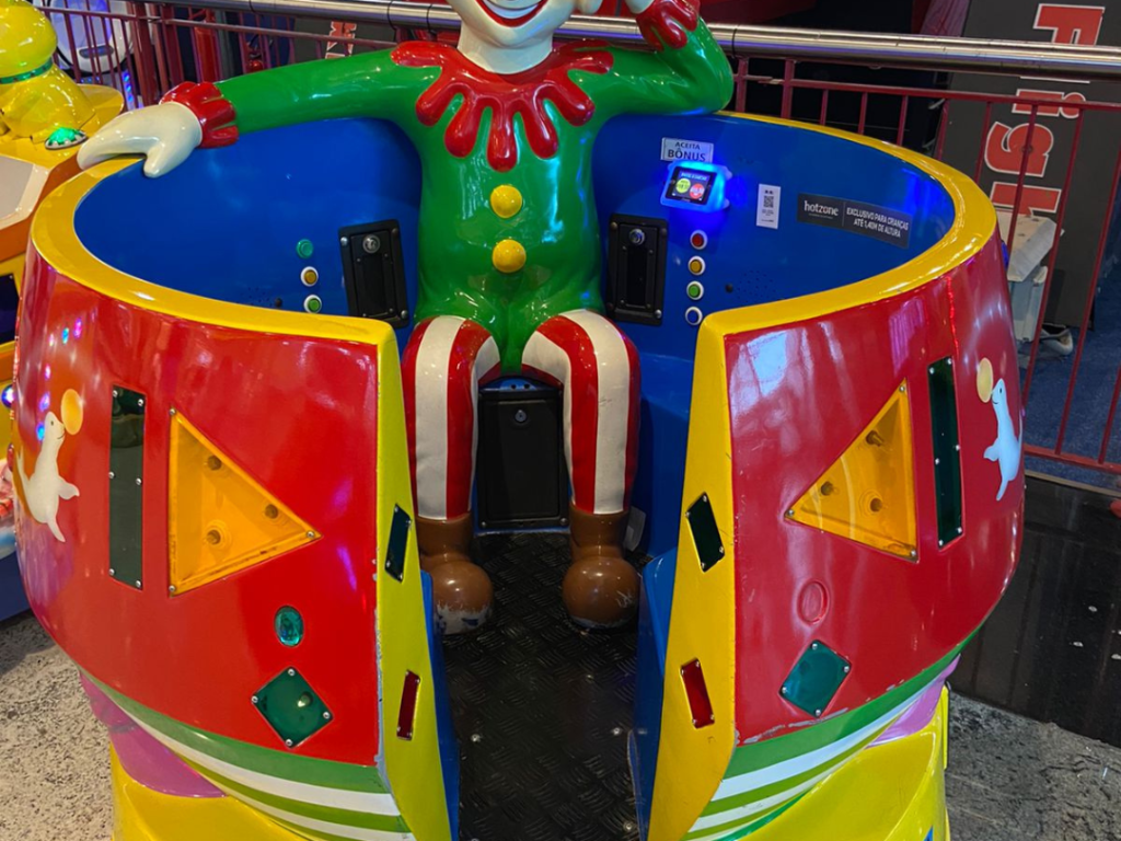 O Happy Cup é um brinquedo infantil giratório da Zamperla, onde as crianças se divertem sentando ao lado do palhaço colorido enquanto o copo gira suavemente. Com luzes, cores vibrantes e movimento leve, ele oferece uma experiência lúdica, segura e perfeita para os pequenos.