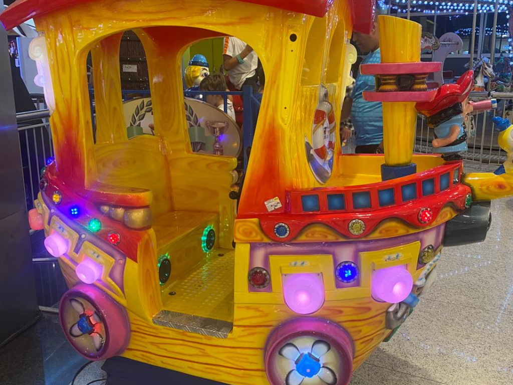 Kiddie Pirate é um barco pirata, cheio de personagens e ainda com um pica-pau a bordo. A brincadeira é bastante interativa e ainda conta com um monitor, que exibe vídeos e jogos em alto mar.