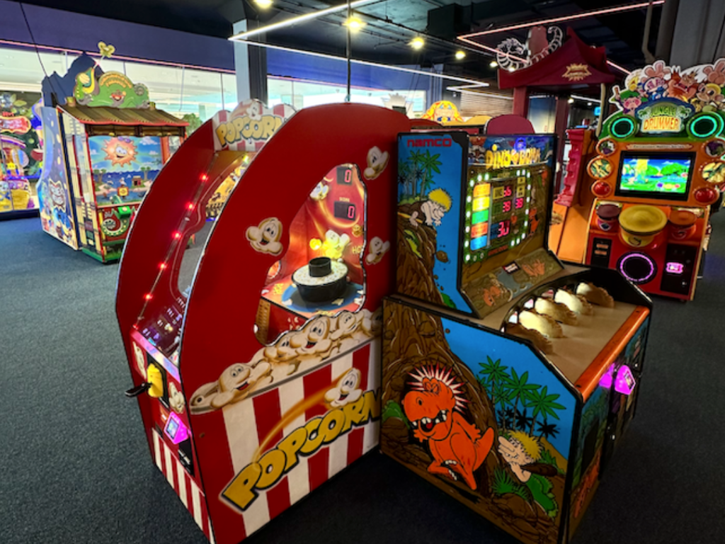 O Dino Bonk é um jogo de ação para crianças onde o objetivo é acertar os dinossauros que aparecem usando um martelinho macio. Colorido, seguro e super divertido, ele trabalha reflexo e coordenação enquanto garante muitas risadas. Uma atração que os pequenos adoram!